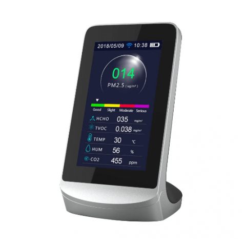 Detector multifuncional de la calidad del aire. AQD-V43 es un elegante monitor portátil de sobremesa recargable. Diseñado para medir y detectar el dióxido de carbono, la temperatura, la humedad relativa y la presión barométrica en interiores. Si necesitas transformar su entorno en empresas y edificios públicos para evitar que los clientes, empleados y visitantes se contagien de Covid-19 en los ambientes interiores, este dispositivo plug and play puede monitorizar fácil y rápidamente los niveles de CO2 en interiores en tiempo real, reduciendo la sobreventilación y ahorrando dinero en costes de energía.